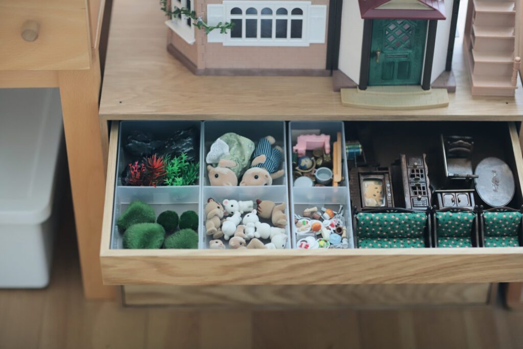 シルバニアファミリー小物収納アレンジその後!3歳女子が一人で片づけるには。