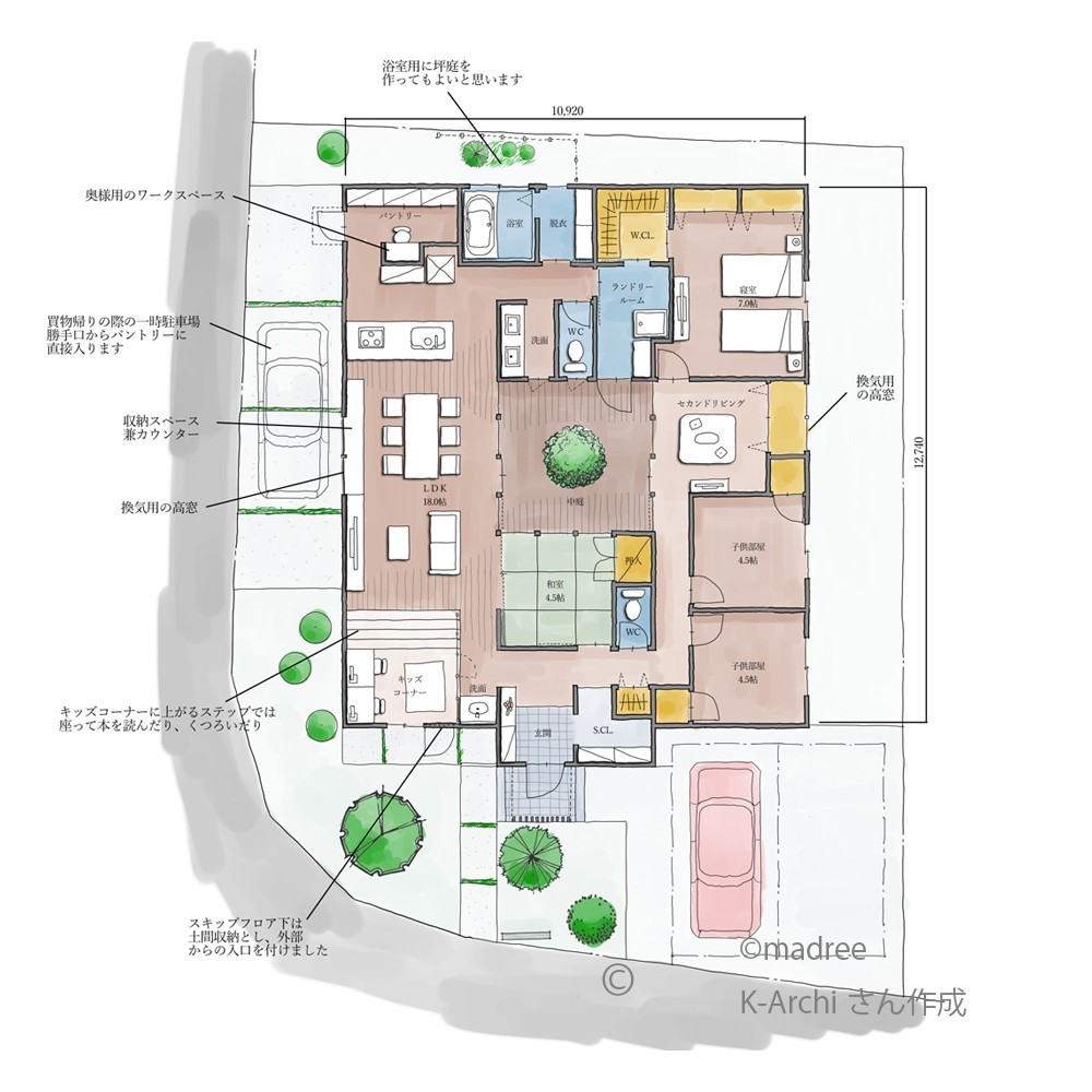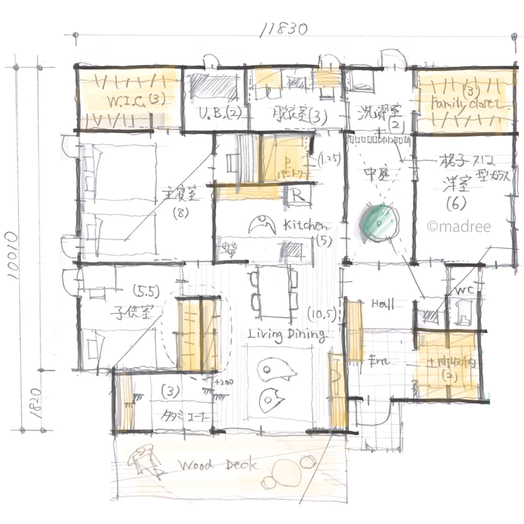 マイホーム新築記録☆間取り図公開!中庭のある平屋中庭のある平屋。