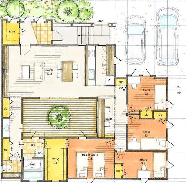 中庭のあるおしゃれな平屋の間取り実例〜後悔しないためのポイントもあわせて解説〜三重県・愛知県・岐阜県の注文住宅ならアサヒグローバルホーム。