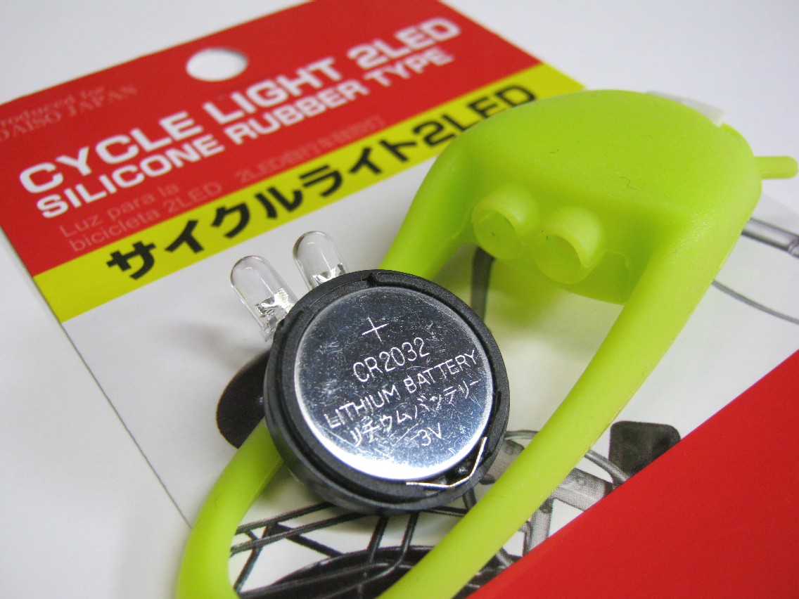 ダイソー』で買った『サイクルライト2LED』 電池がCR2032×2個のバージョン : パソコン・FXなどに関する日記。