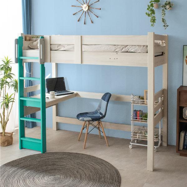 Oise オワーズロフトベッド ホワイト ターコイズブル。