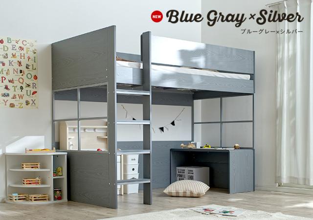 ハイタイプ ロフトベッド Peep ピープ ブルーグレー シルバー。