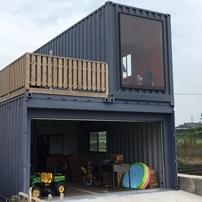 住宅 施工例5 インナーガレージ付き!こだわりのつまった2階建てコンテナハウス住宅コンテナハウスは建築確認対応 国内製作のBOX OF IRONHOUSE。