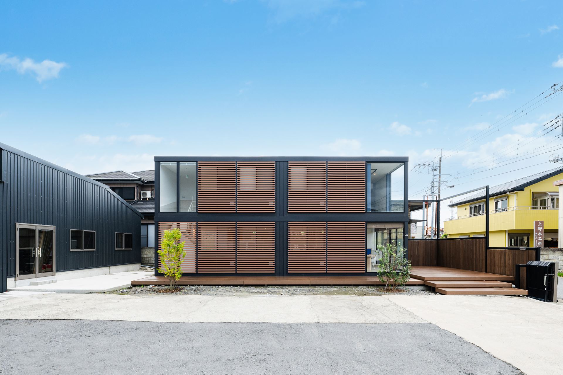 施工事例14 住居・事務所兼用屋上テラスデッキ付きコンテナハウス - 建築確認コンテナハウス。