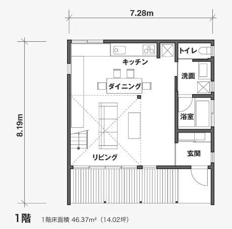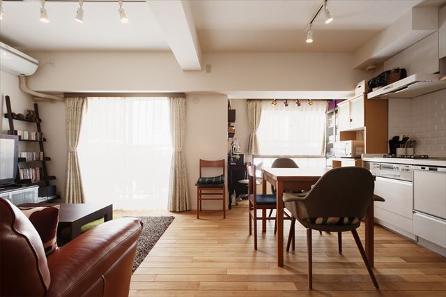 縦長リビング×壁付けキッチンのおしゃれ間取り東京のリノベ事例中古マンション・戸建てリノベーション&リフォーム。