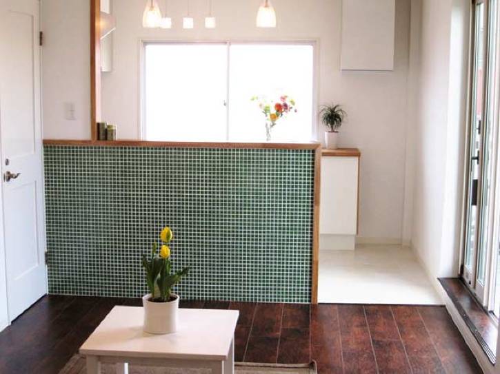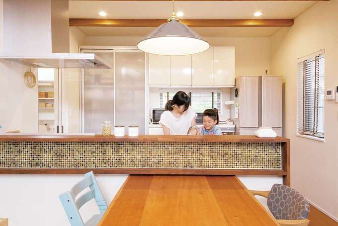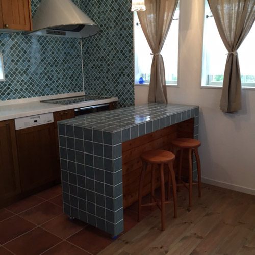 キッチンカウンターのモザイクタイル千葉、東京の注文住宅なら木のすまい工房。