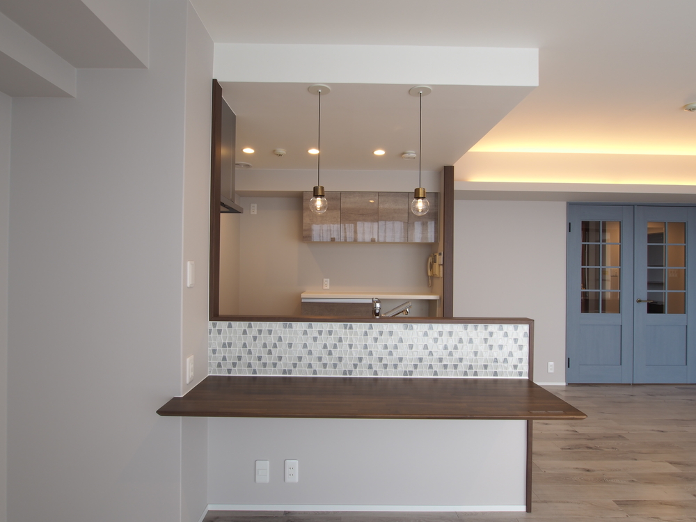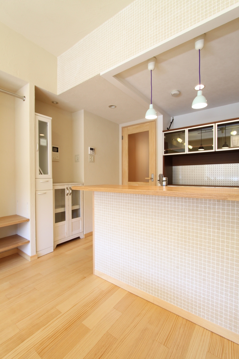 地元産のタイルがアクセント。家族が集うキッチンカウンターのある住まいへリノベーション - マンションリノベーション事例リノベりす。