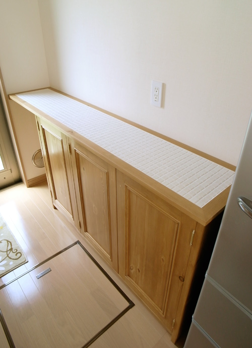 無垢材で造る タイルラック キッチンカウンター - ハンドメイド家具 うらら。