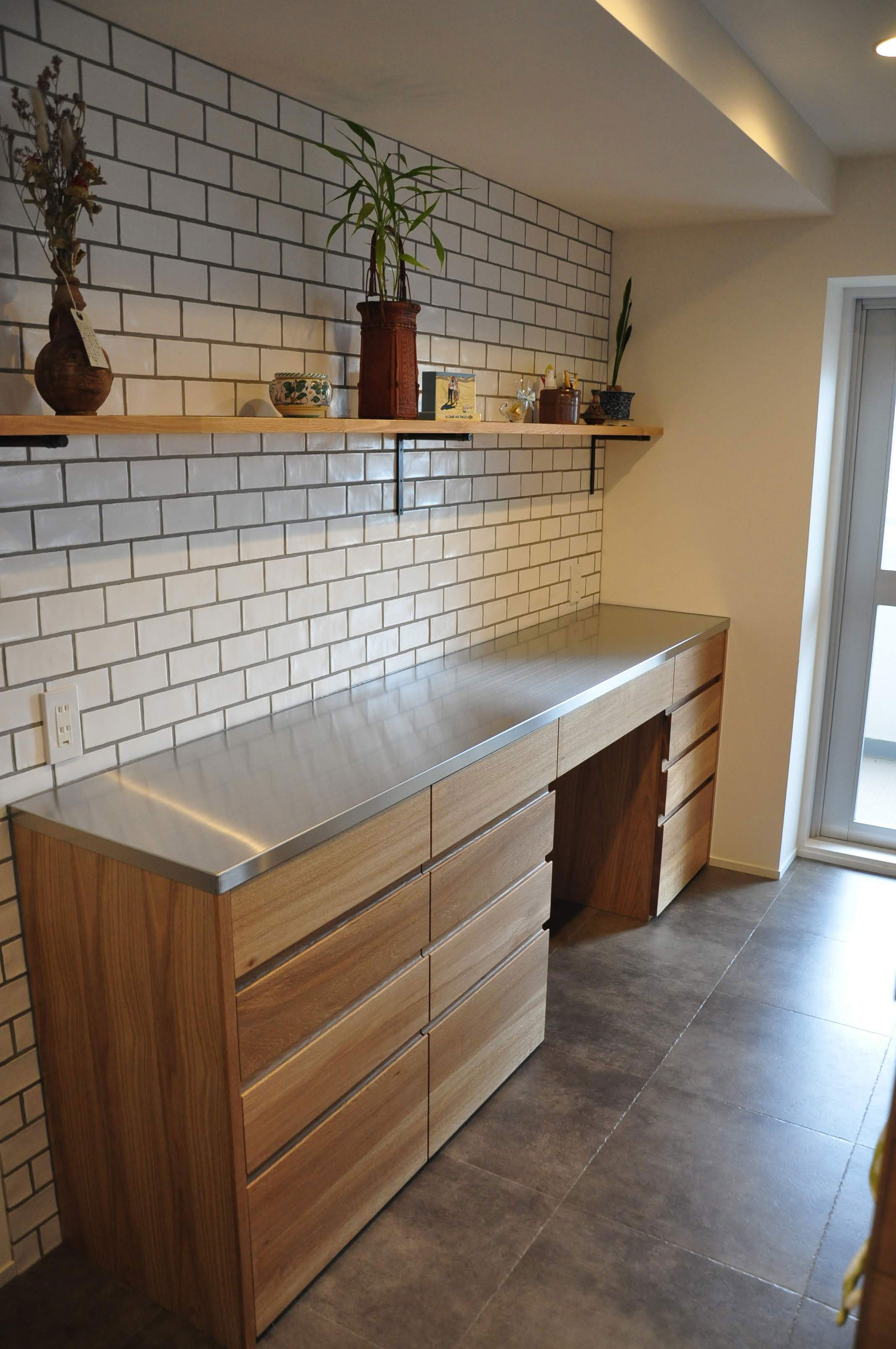 キッチンカウンターをおしゃれに壁と床のタイルで楽しむ 5060 - オーダーメイド家具キッチン家具工房ツリーベ。