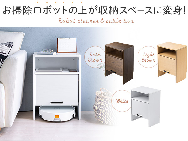 NISSHO Lefurni ロボット掃除機 収納ボックス 収納家具 電話台 キャスター付き ルーター収納 ケーブル。