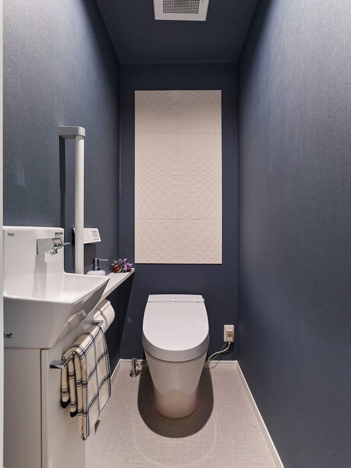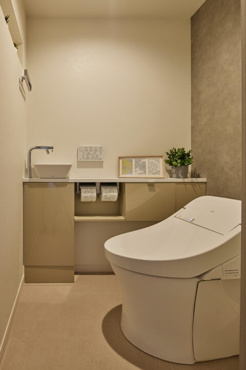 上下でデザインを分けたスタイリッシュで清掃性も高めたトイレリフォーム実例TOTO株式会社。