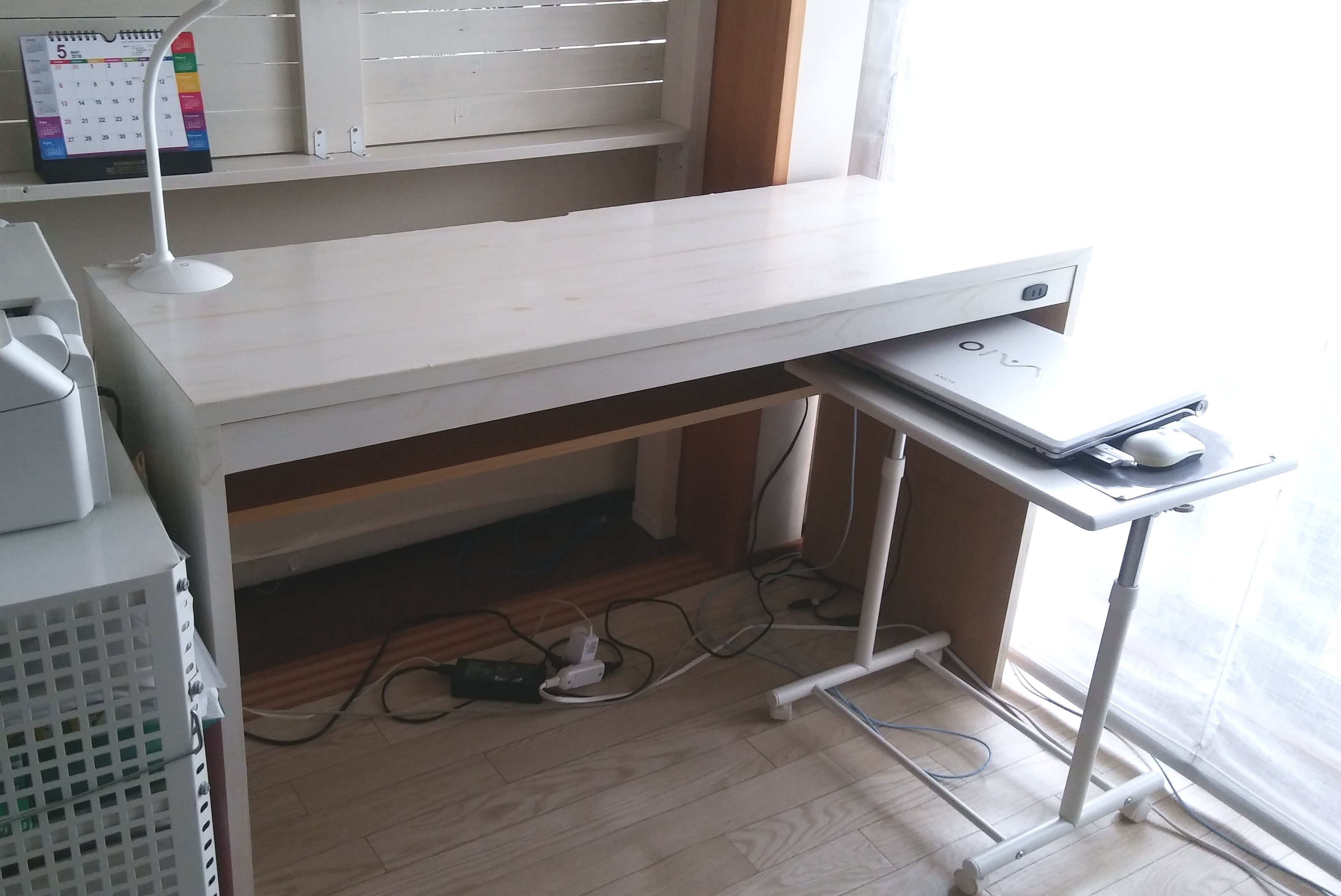 たにぼっち の ゆるっとリメイクシートでテーブルDIY1机の色を白くしたい。