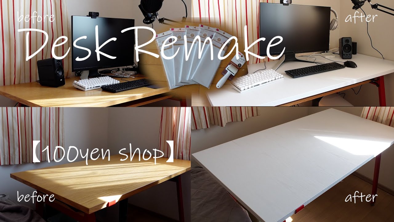 憧れの白デスク リメイクシートで低予算で簡単にデスクの色を変える方法 - YouTube。