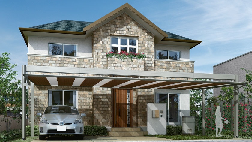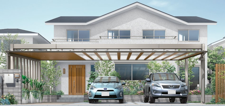 玄関まで雨に濡れないガレージオーダーガレージ・カーポートは中部住器名古屋・愛知・埼玉。