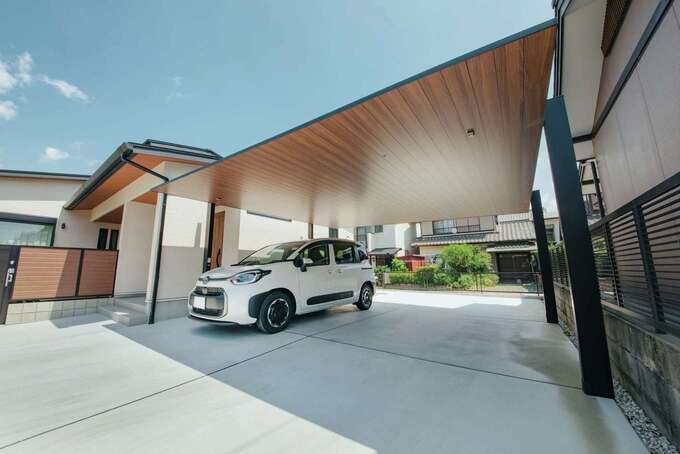 一目ぼれしたモダンなカーポート。雨の日でも濡れずに玄関へ行ける くふうイエタテ。
