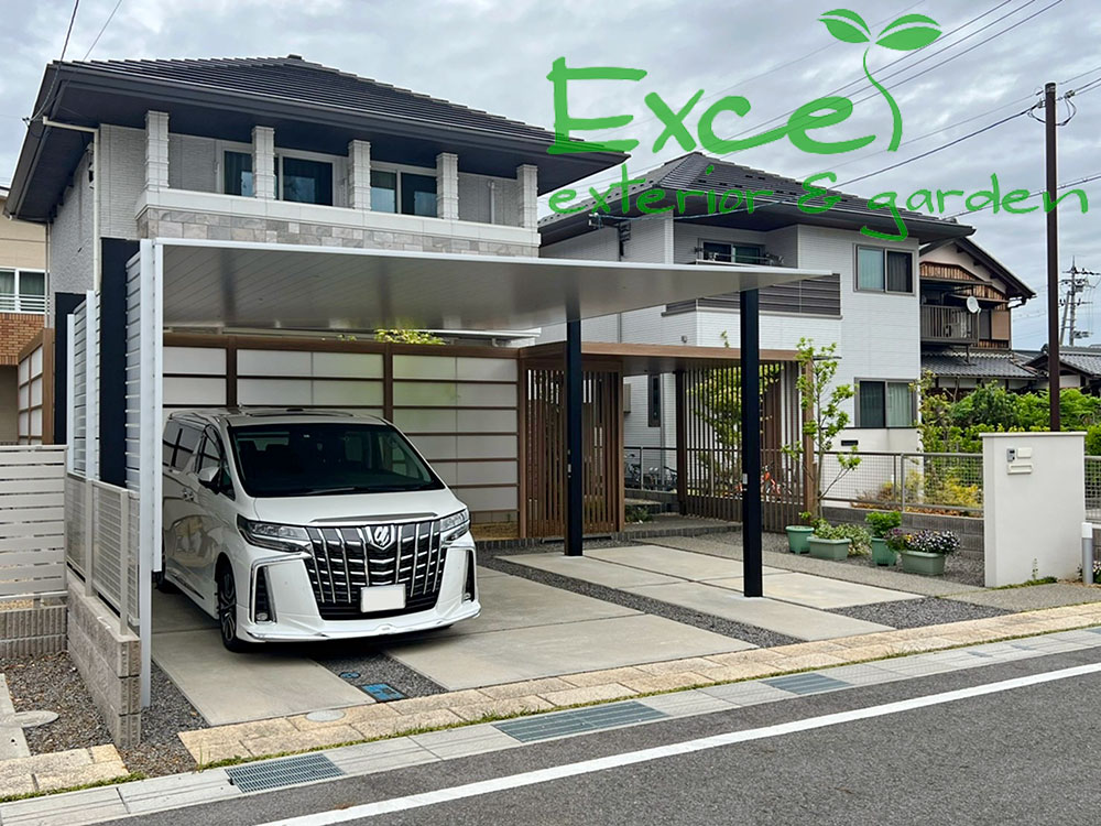 三重県津市 H様邸 リクシル LIXILカーポートSC ワイド 外構 おしゃれエクステリア大阪・三重・愛知・滋賀のカーポート・目隠しフェンス・物置格安工事エクステリア.com。