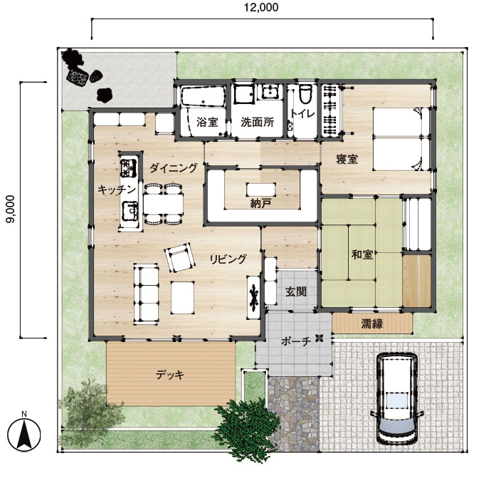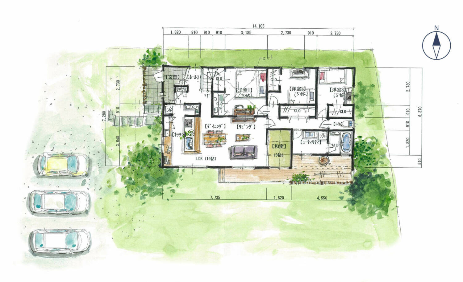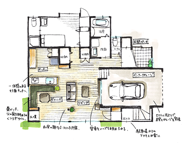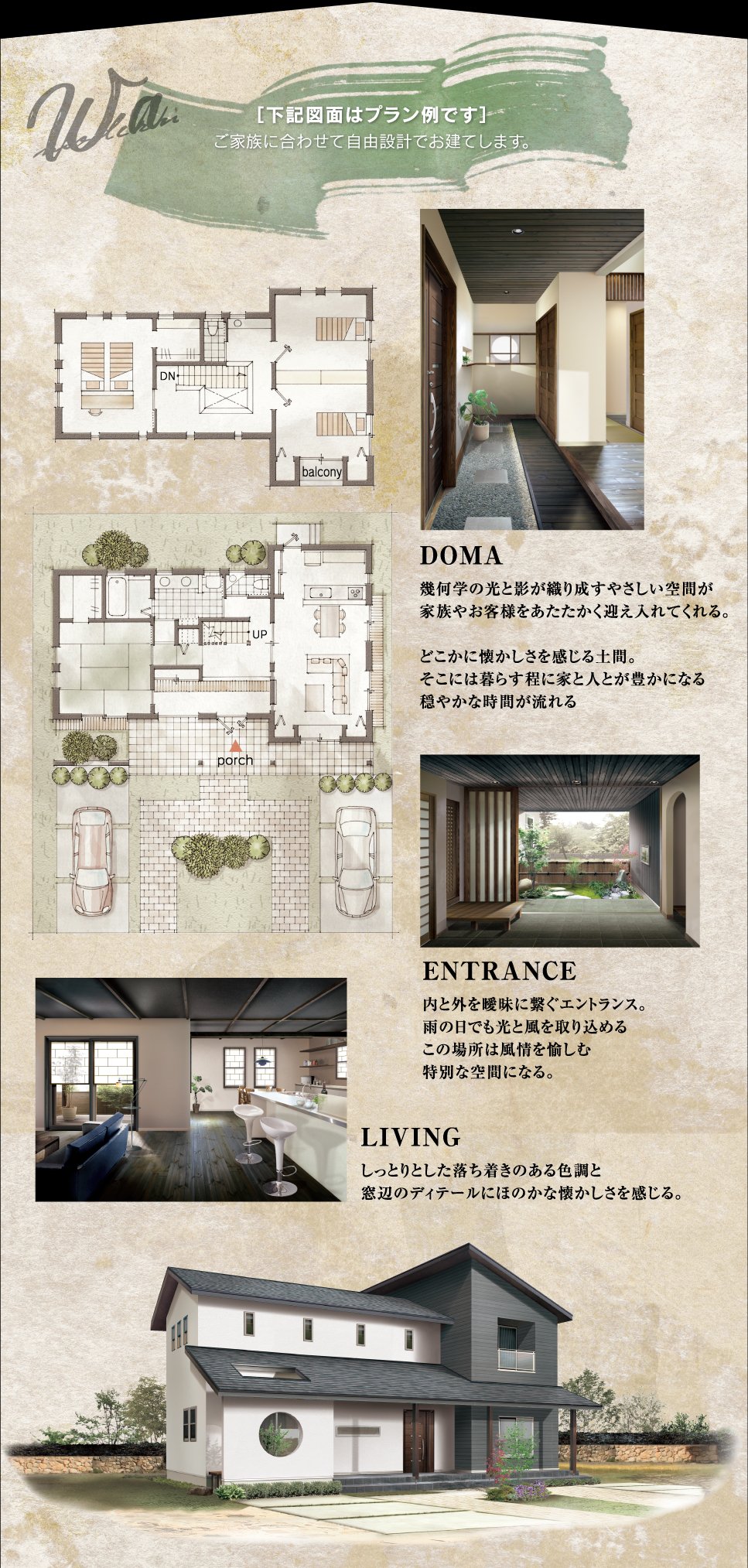 使いやすさと癒しを兼ね備えた、和モダンの家— ガレージ直結キッチンと選べるワークスペースで、心地よさと快適性を両立 —間取り プラン集千葉県松戸市で注文住宅・新築分譲住宅・土地を探すならエドケンハウス。
