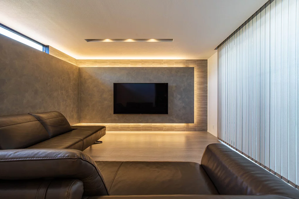間接照明取付工事天井にルーバーを造作して間接照明を取り付けたり、テレビを壁掛け設置した際に背面にボードやエコカラットを貼り、間接照明 を組み込むなどの工事を行っております。間接照明が組み込まれたオーダーメイドによる家具の販売も行っております。