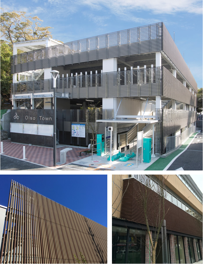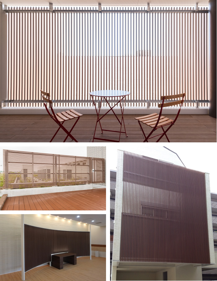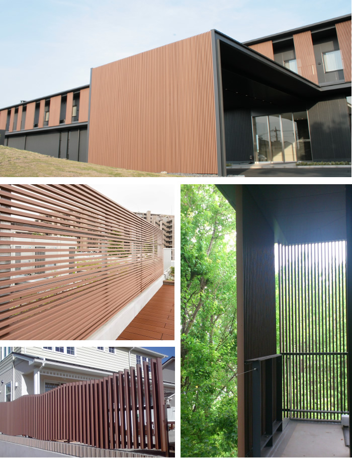 合成木材 人工木材・リサイクルウッド・再生木材 のルーバー・格子の施工例・実績。