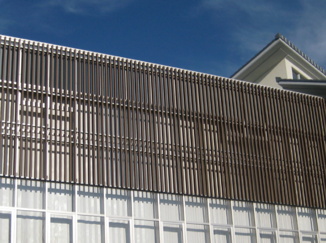 再生木材を使った遮光ルーバー ラスコジャパンイプロス。
