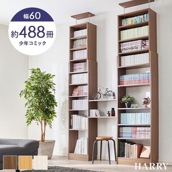 本棚 大容量 スリム 多機能 幅60 薄型 突っ張り棚 ラック 収納 オープンラック コミック。