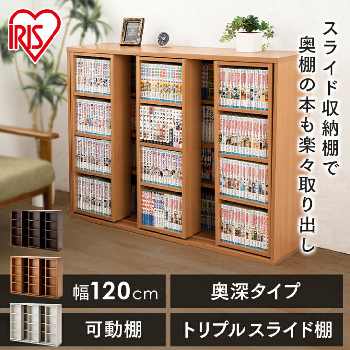 本棚 大容量 スライド 収納 トリプル 幅120 おしゃれ コミックラック スリム アイリスオーヤマ送料無料 絵本棚 北欧 省スペース カラーボックス絵本 漫画 マンガ 文庫本 ラック 書斎 読書 CST-1200カーサイクルショップ KUJIライフ。