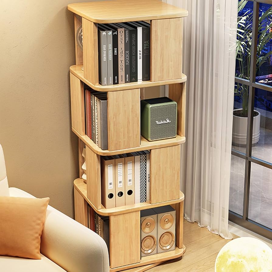 回転本棚 木製 多機能 おしゃれ 大容量 多層階 立体設計 分類整理 コンパクト 本 絵本 コミック オープンシェルフ コーナー収納 回転ディスプレイフロアスタンド本棚 収納棚 ブックシェルフ RaogtCYU AmazonNOBBAT 本棚 回転式本棚 回転本棚 本棚 コンパクト 本棚。