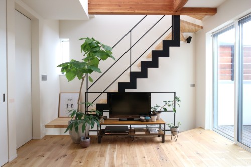 リビング階段にはスケルトン階段がおすすめ?吹き抜けにすべき?間取りの注意点は?重量木骨の家。