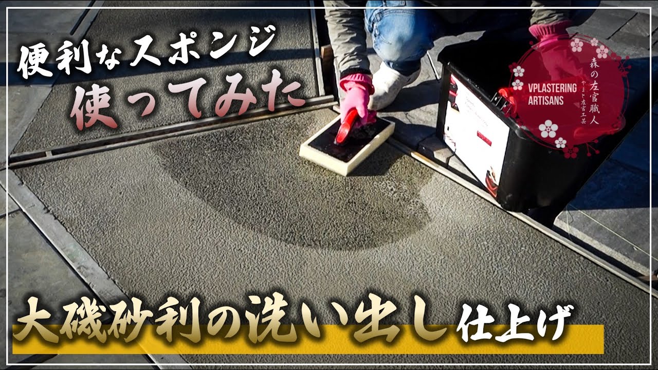 左官 大磯砂利の洗い出し仕上げ 便利なスポンジ 使ってみた。