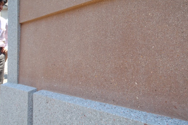 洗い出し仕上げ 外壁に使用原田左官工業所。