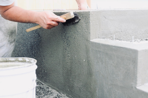 左官 セメントとビリ砂利で施工する洗い出し仕上げ。