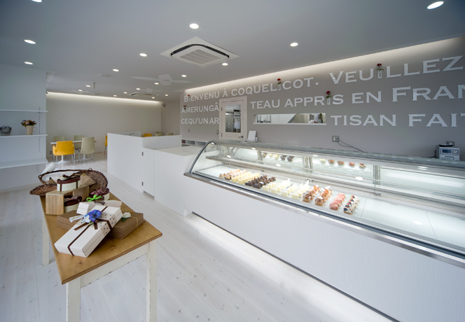 府中 洋菓子店 LUMIÉRE リュミエール店舗の内装 デザイン 設計 施工例。