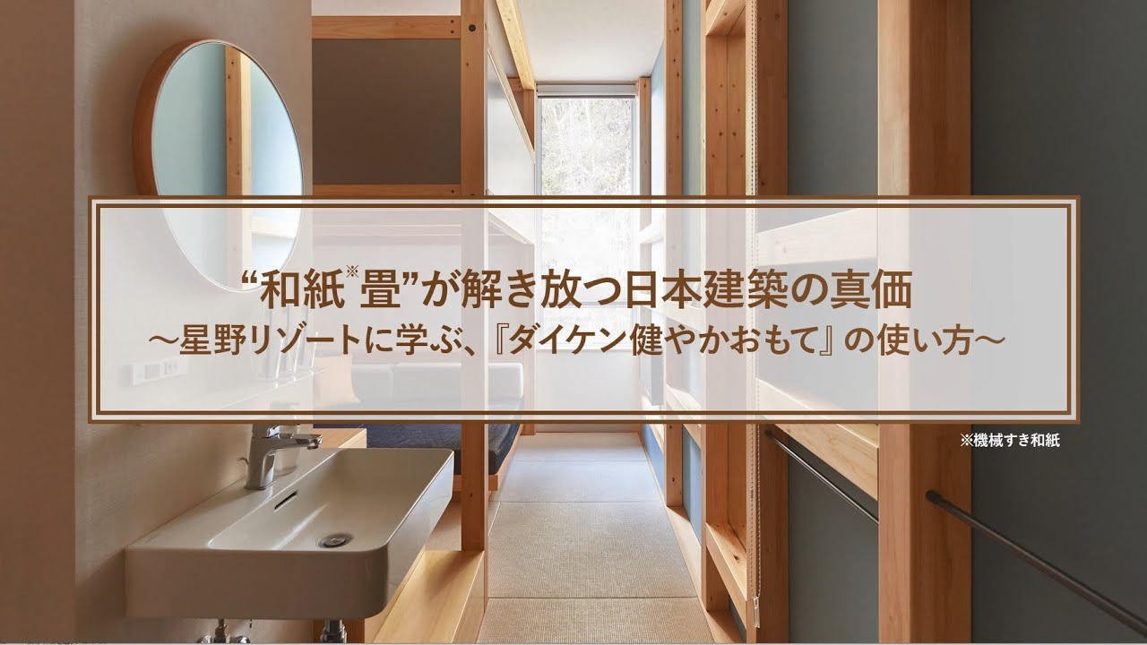 PR建築知識 〝和紙畳〞が広げる日本建築の可能性~星野リゾートに学ぶ、『ダイケン健やかおもて』の使い方~tatami with JapaneseArchitecture。