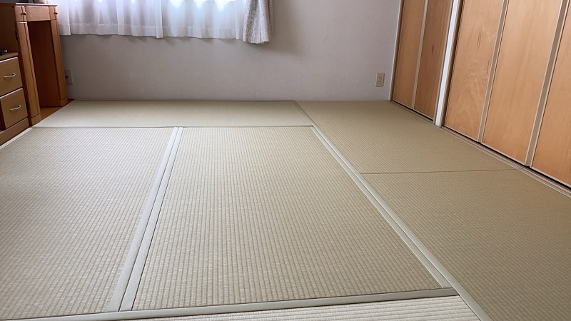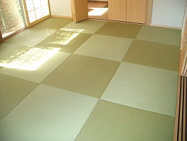 ダイケン和紙畳“穂波”03でヘリ無しカラー畳の施工しました。 - 山哲畳商店 和歌山の畳屋・畳専門店。