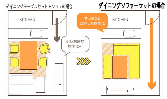 狭いお部屋には ダイニングソファ という選択を!広々としたレイアウトにしようキナリノ。
