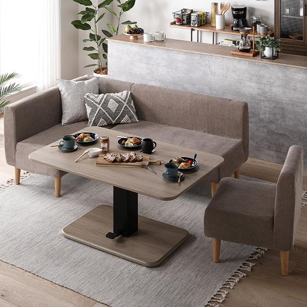4点セットモイストヒノキ 昇降式テーブル コーナー ソファ ダイニングセット。
