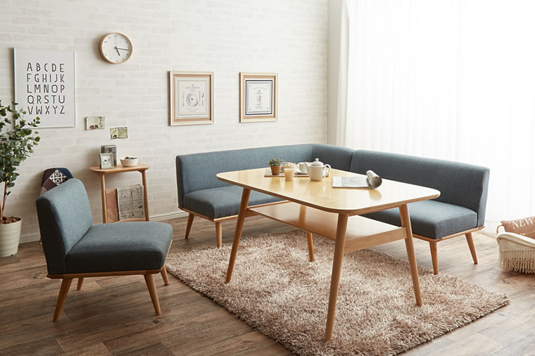 4人掛けソファダイニング4点セット ナチュラル+ネイビー ナチュラル+ダークブラウン ナチュラル+グレー ロータイプ 幅120公式 LOWYA ロウヤ家具・インテリアのオンライン通販。