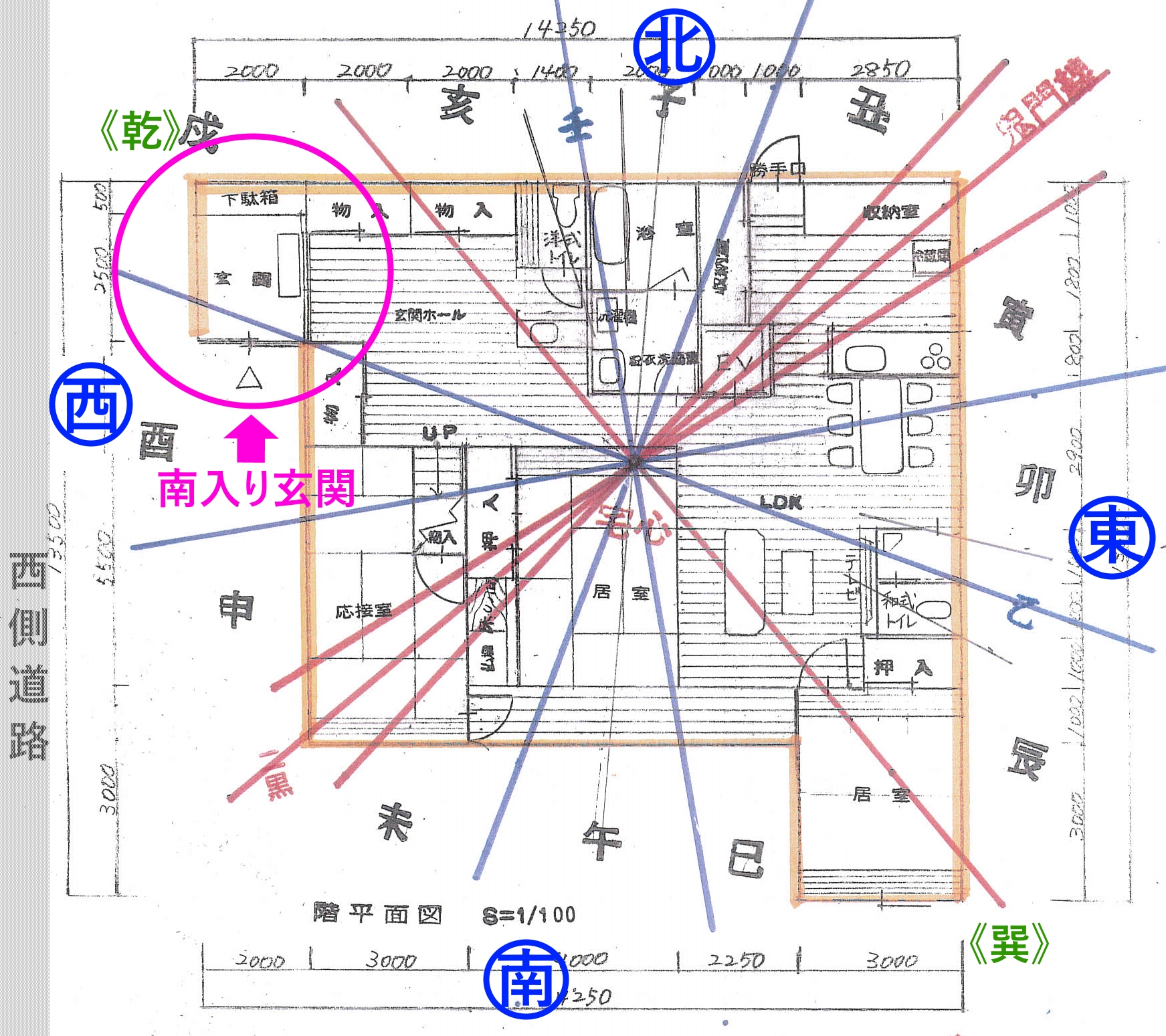 38坪4LDK南玄関の間取りの家相診断家相診断。