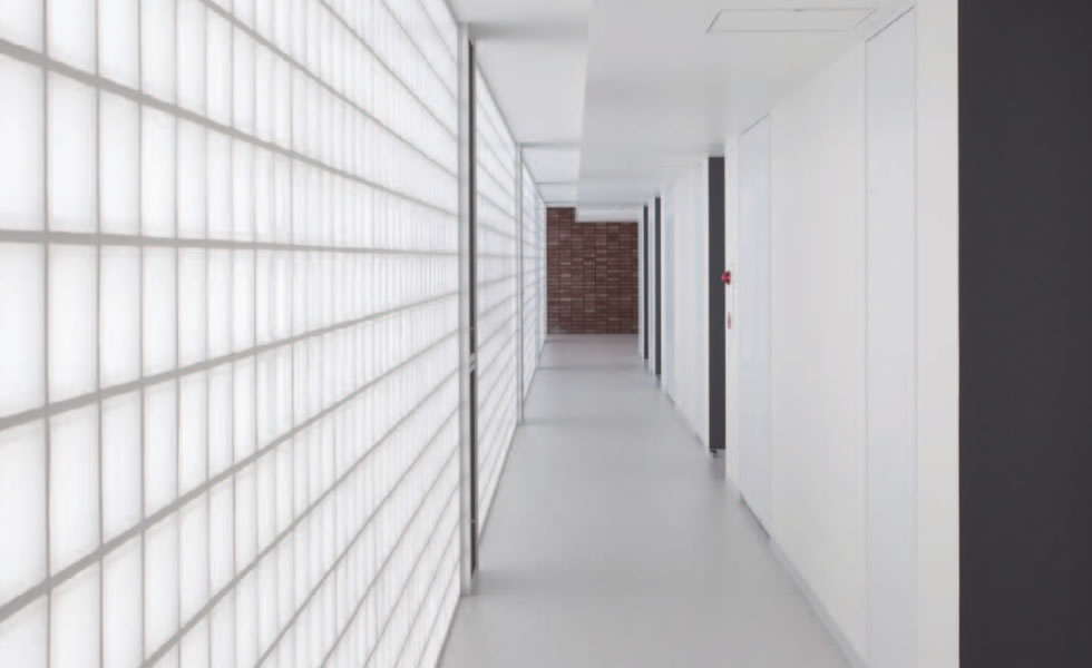 ガラスのファサードと室内装飾におけるガラスブロックの応用。