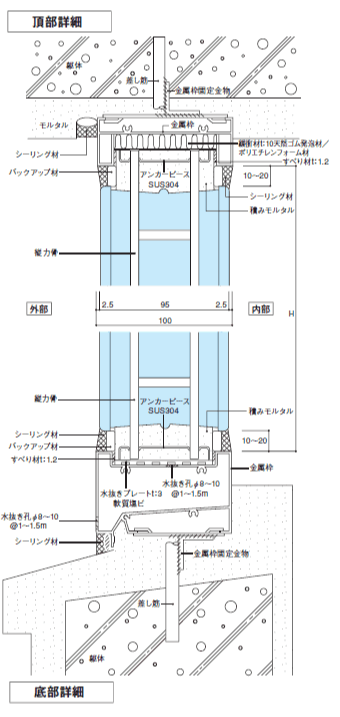 LIXIL次世代ビル用サッシ PRO-SE仕様FIX窓 スクリーン ガラスブロック枠。