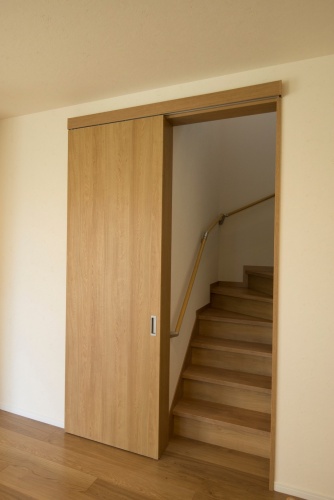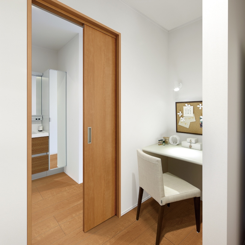 引戸は「動く壁」として、目立たせないハイドア採用事例ベリティスプラス室内ドア・フローリング・収納Panasonic。