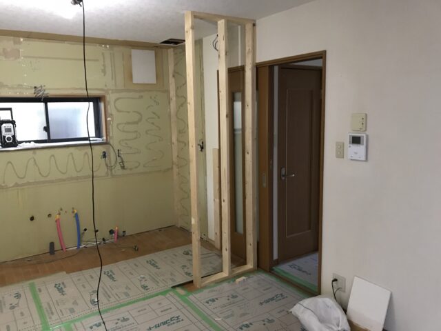 キッチンの袖壁と戸袋下地 – つむぎ施工ブログ。