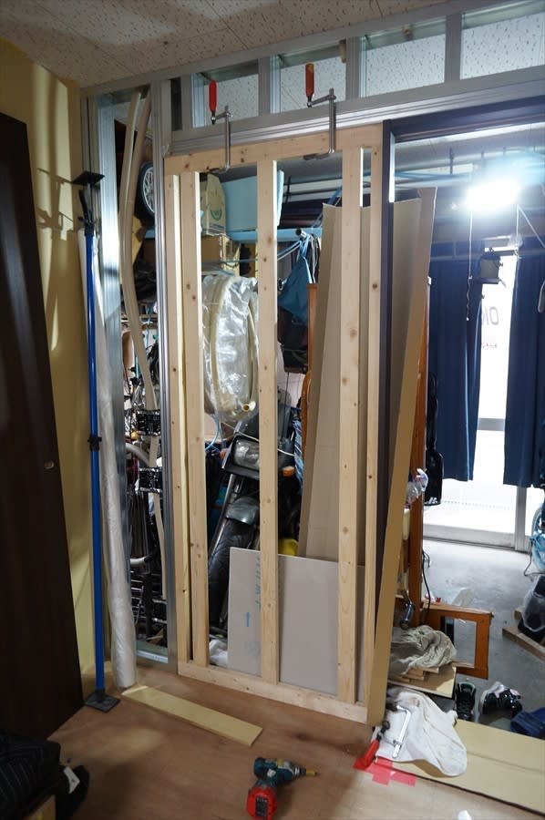 DIY 間仕切り壁の作り方 片引き戸付き。