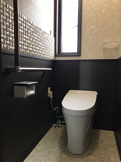 トイレリフォーム LIXILプレアス 腰壁クロス住まいるステーションが工事をしてきたより良い住まいの施工事例。