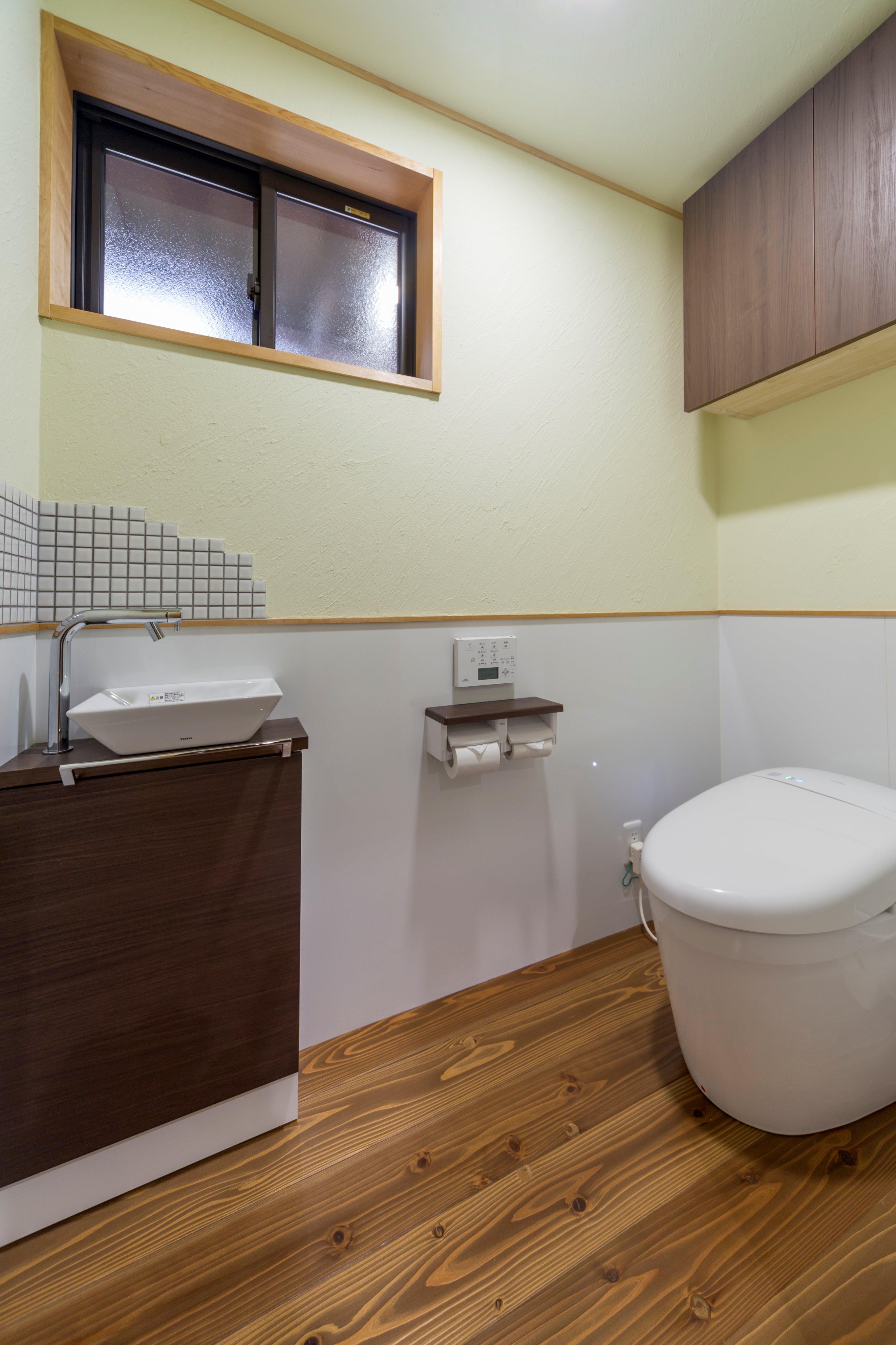 美浜町 トイレ LDK デザイン 自然素材 パイン 御坊市、日高郡の注文住宅、ニ階建て、平屋住宅はアドホーム 工務店。