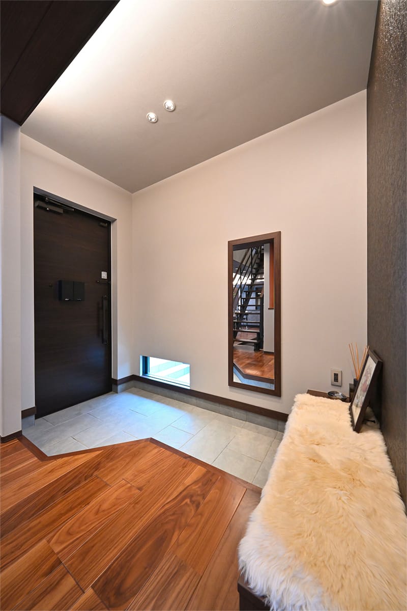 玄関とリビングを直結させる間取りで開放感のある暮らし。