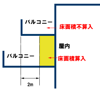 バルコニーは床面積に算入されない。幅2m超など算入時の規定も解説家選びネット。