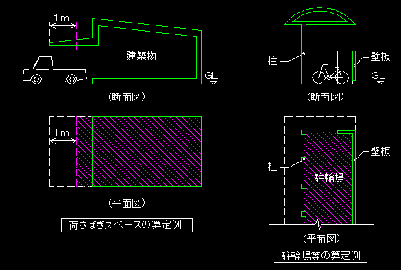 屋内的用途・床面積の関係 屋内的用途を分かりやすく解説。基本は床面積に算入。Urban & Architecture Blog。