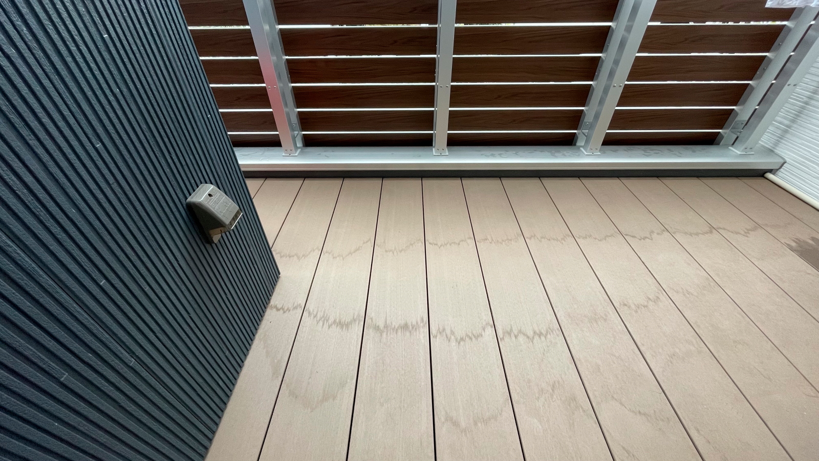 木造住宅バルコニーのFRP防水と浮き床デッキ材北島建築設計事務所。