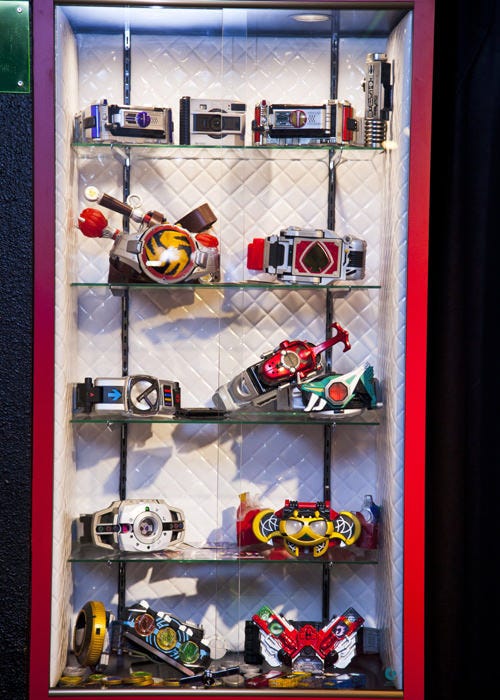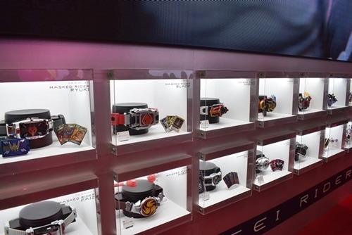 仮面ライダーの変身ベルトが並ぶ - 梅田経済新聞。
